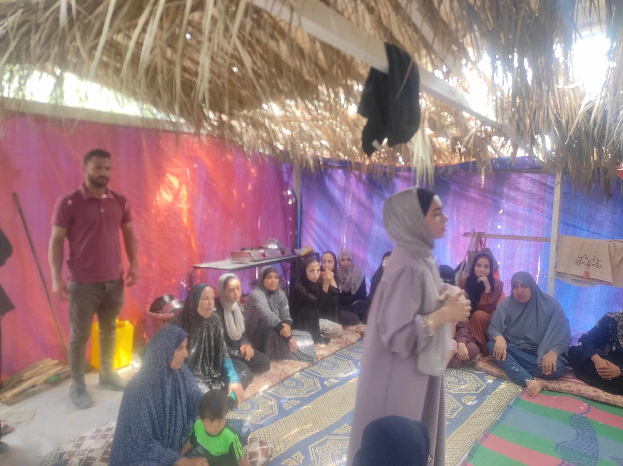ضمن جهود مؤسسة بيتنا الشبابي لتعزيز الصحة النفسية وتمكين الشباب والنساء، نفذت المؤسسة جلسات دعم نفسي جماعي للفتيات والنساء في مخيم نازيحن – دير البلح ، حيث استفاد من الجلسات 42 من الفتيات النازحات ..