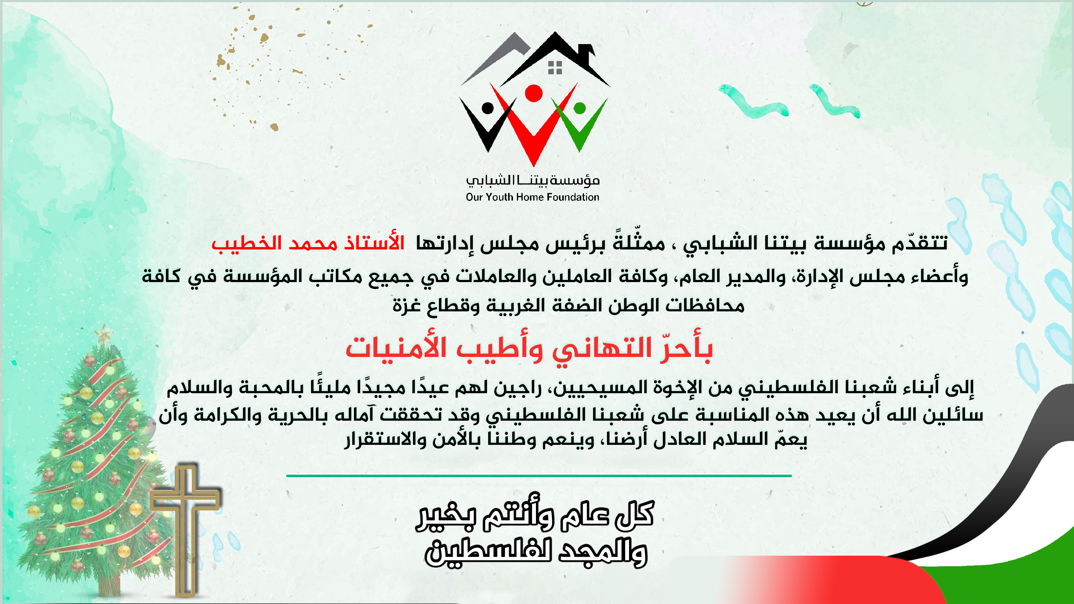 تهنئة من مؤسسة بيتنا الشبابي بمناسبة عيد الميلاد المجيد
