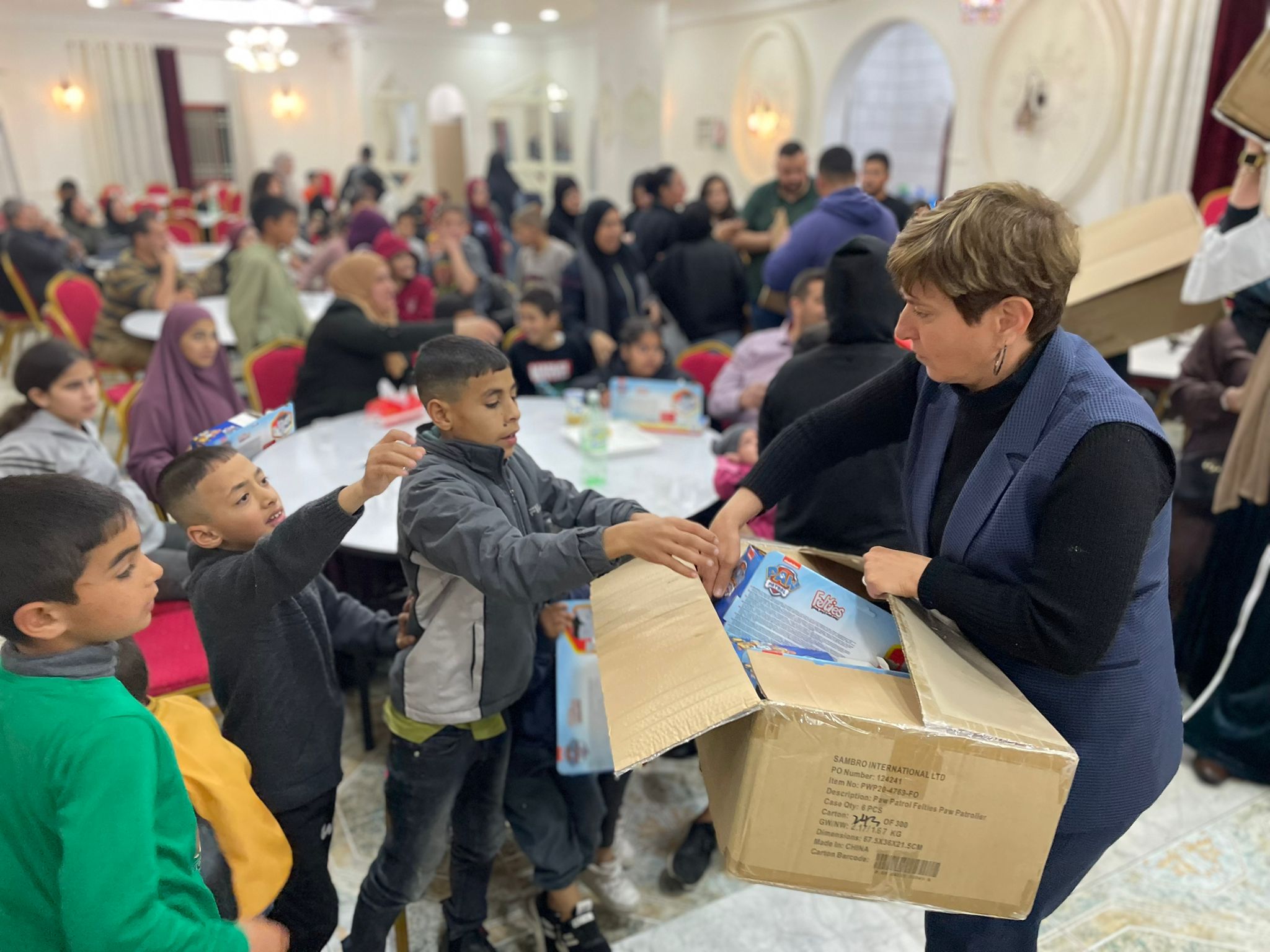 وقد شارك وفد من مؤسسة بيتنا الشبابي في الإفطار وشارك في توزيع ألعاب وملابس للأطفال والعائلات المتعففة بمناسبة قرب حلول عيد الفطر السعيد والذي استهدف ٢٥٠ طفل في كافة محافظات الضفة الغربية .