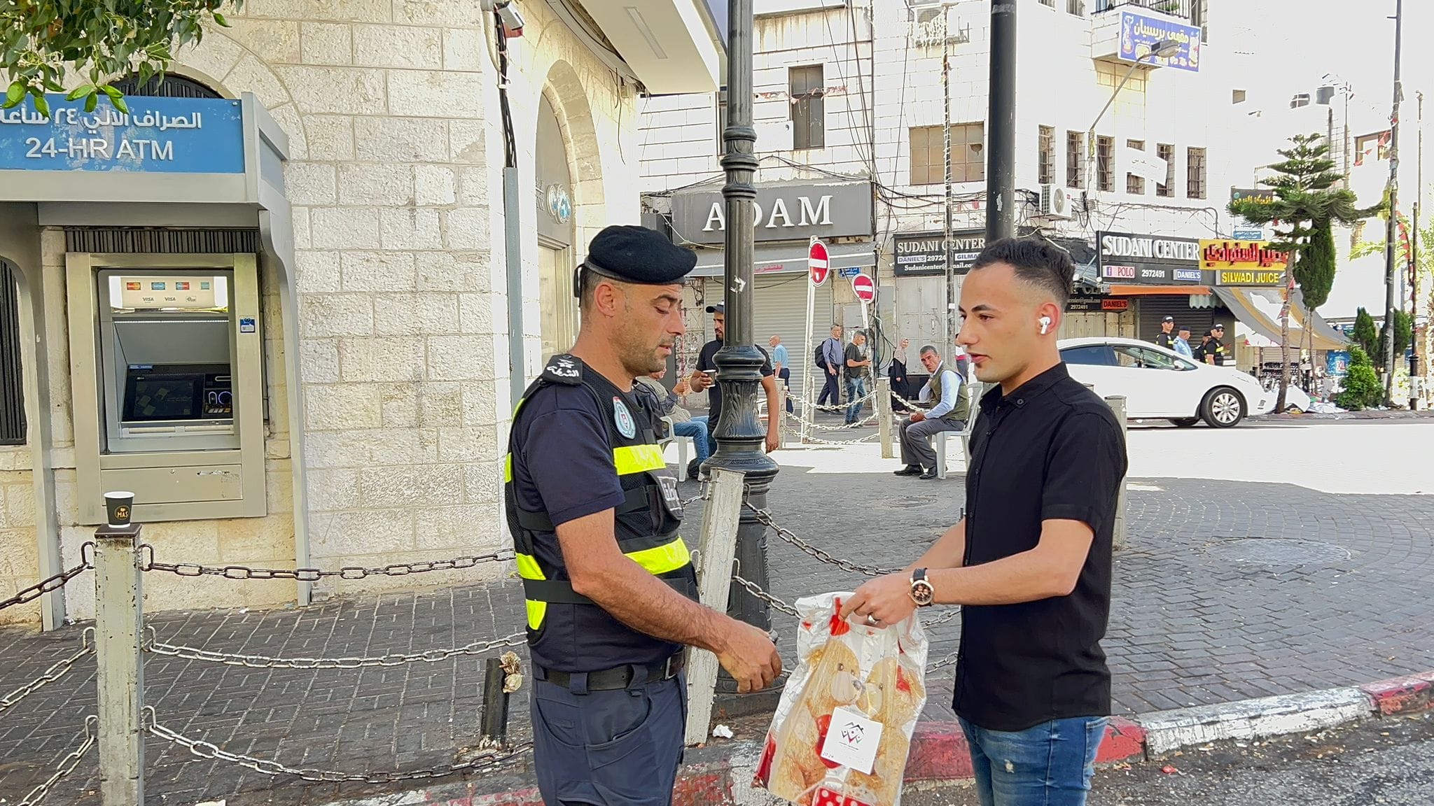 وتبادل منتسبو ومتطوعون المؤسسة مع رجال الشرطة التهنئة بحلول عيد الأضحى، والتمنيات والدعاء لشعبنا الفلسطيني بقبول الطاعات والعبادات خصوصاً في هذه المرحلة العصيبة التي تمر على شعبنا .
