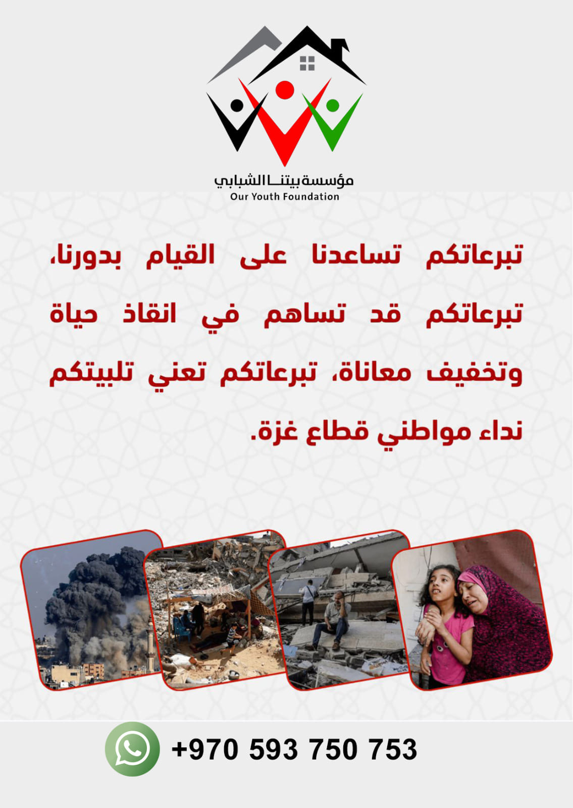 ونتيجة لمئات المناشدات فإن فريق مؤسسة بيتنا الشبابي في قطاع غزة يستقبل تبرعاتكم الإغاثية والإنسانية والطبية في قطاع غزة .