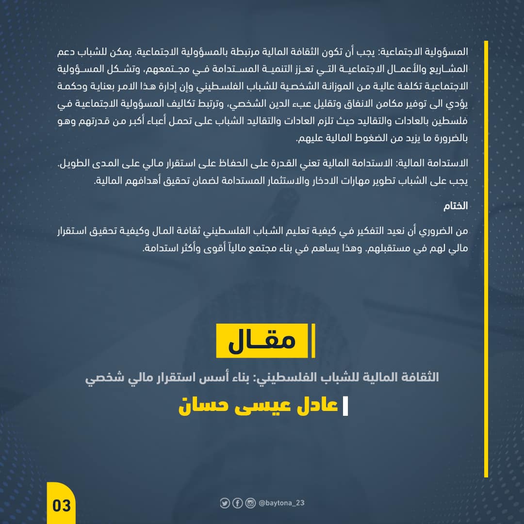 الثقافة المالية للشباب الفلسطيني: بناء أسس استقرار مالي شخصي