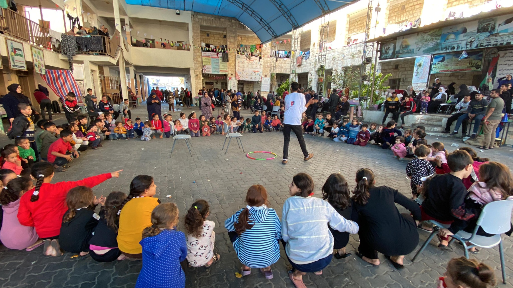 فقد ما يقارب 10,000 طفل فلسطيني أمهاتهم أو آبائهم في غزة . يتم التخفيف عن هؤلاء الاطفال وابعادهم عن أجواء الحرب من خلال الأنشطة الاجتماعية